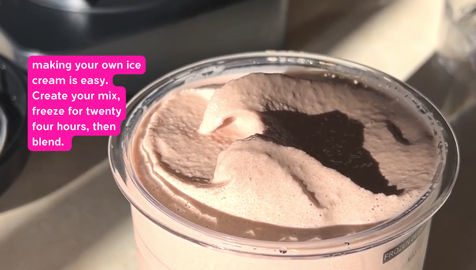 The creation time varies. You'll always need to freeze your base for 24 hours, and the spin time is quick, taking only 1 to 3 minutes to create your dessert.